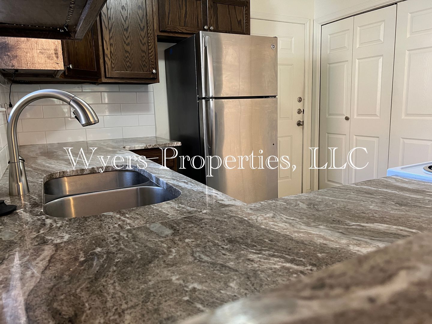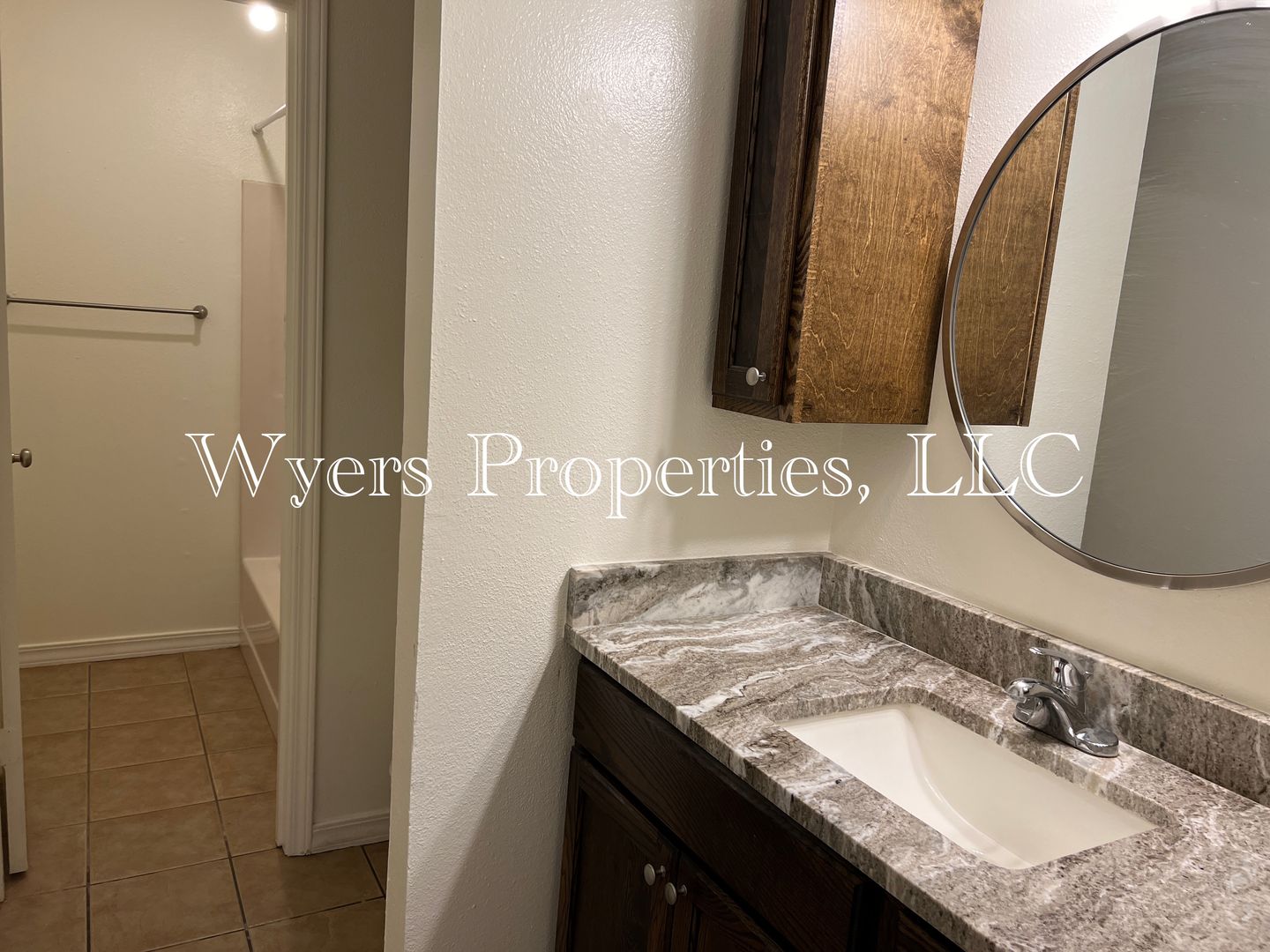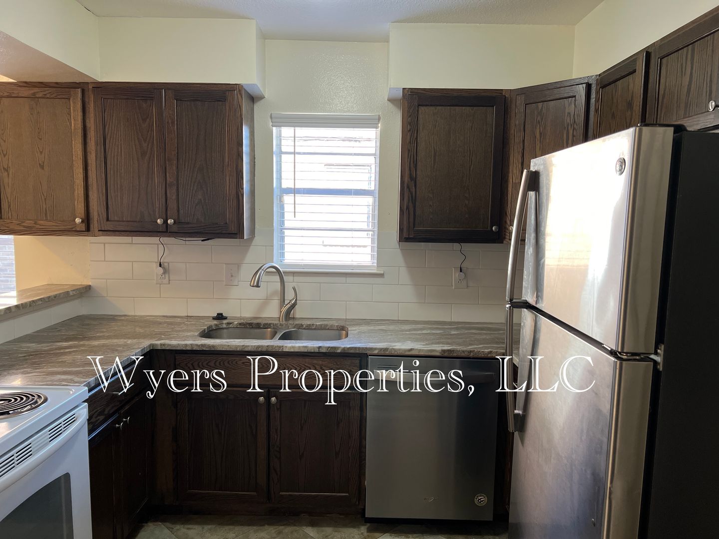 Updated 2 bedroom, 2 bath duplex with granite counter tops in the kitchen and bath areas, fenced back yard, covered patio and 2 car carport