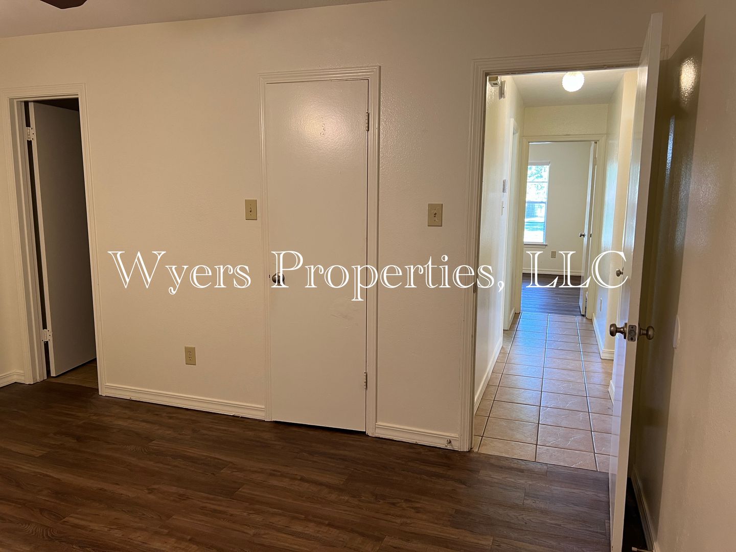 Ceramic tile in living areas, dining, kitchen and hall with warm wood look vinyl tile in the bedrooms