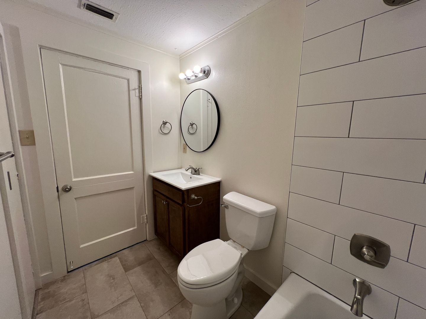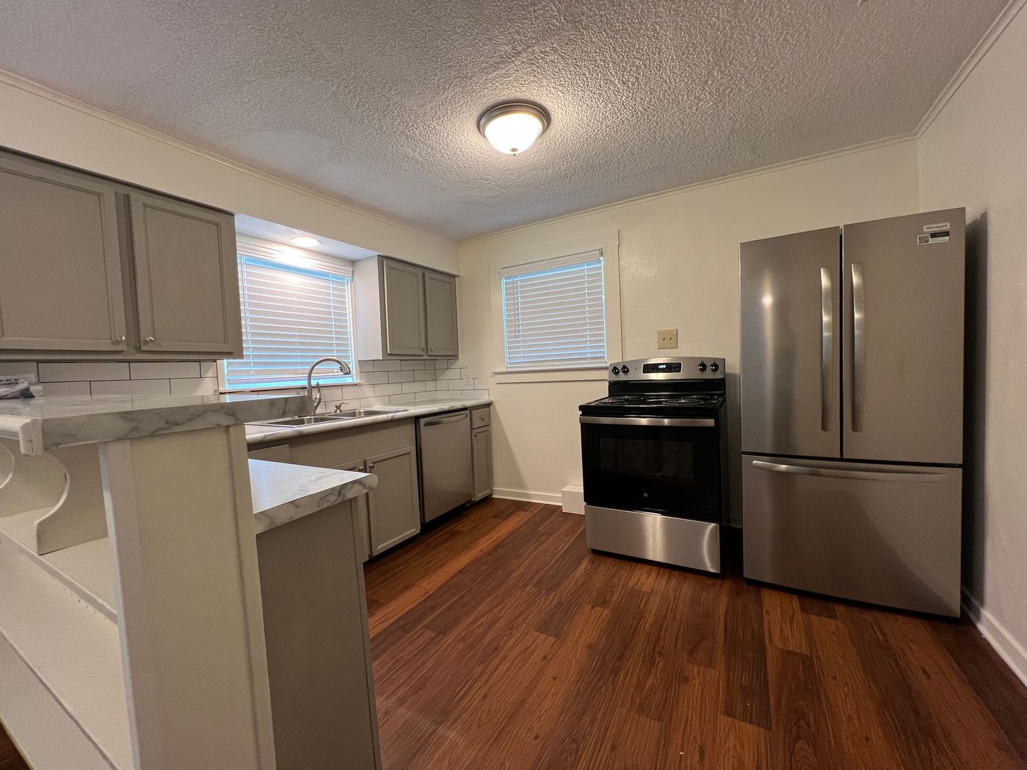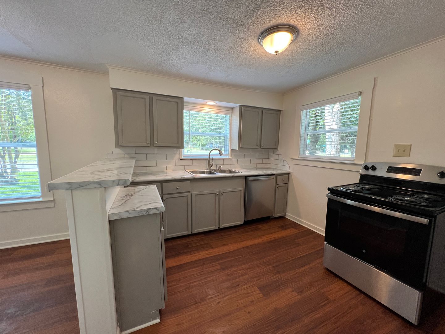 Move-In Ready! This wonderful home with central heating cooling has been updated with new paint inside and out, new ceiling fans, new front and rear doors, new kitchen and bath counters and counter tops, new stainless steel oven/range and stainless steel dishwasher. The bathroom has been remodeled with new subfloor, new floor tile and sophisticated large format white subway wall tile, new Delta shower/tub faucet, new vanity faucet, new towel and toilet paper hardware and a new porcelain coated cast iron tub. New floor tile in the office/bonus room/washer and dryer closet and brand new carpet has been installed in the bedrooms to keep feet comfortable. New energy efficient vinyl frame duel glazed thermal pane windows have been installed at all the windows except the office/bonus room which already had a duel pane window. New 2" faux wood blinds in the living areas and 1" vinyl blinds in the bedrooms and office/bonus room. There is a concrete foundation pad at the northeast corner of the back yard for a storage building. This Pine Tree ISD home has a lot of "new" and also has a view of Birdie Park directly across the street.